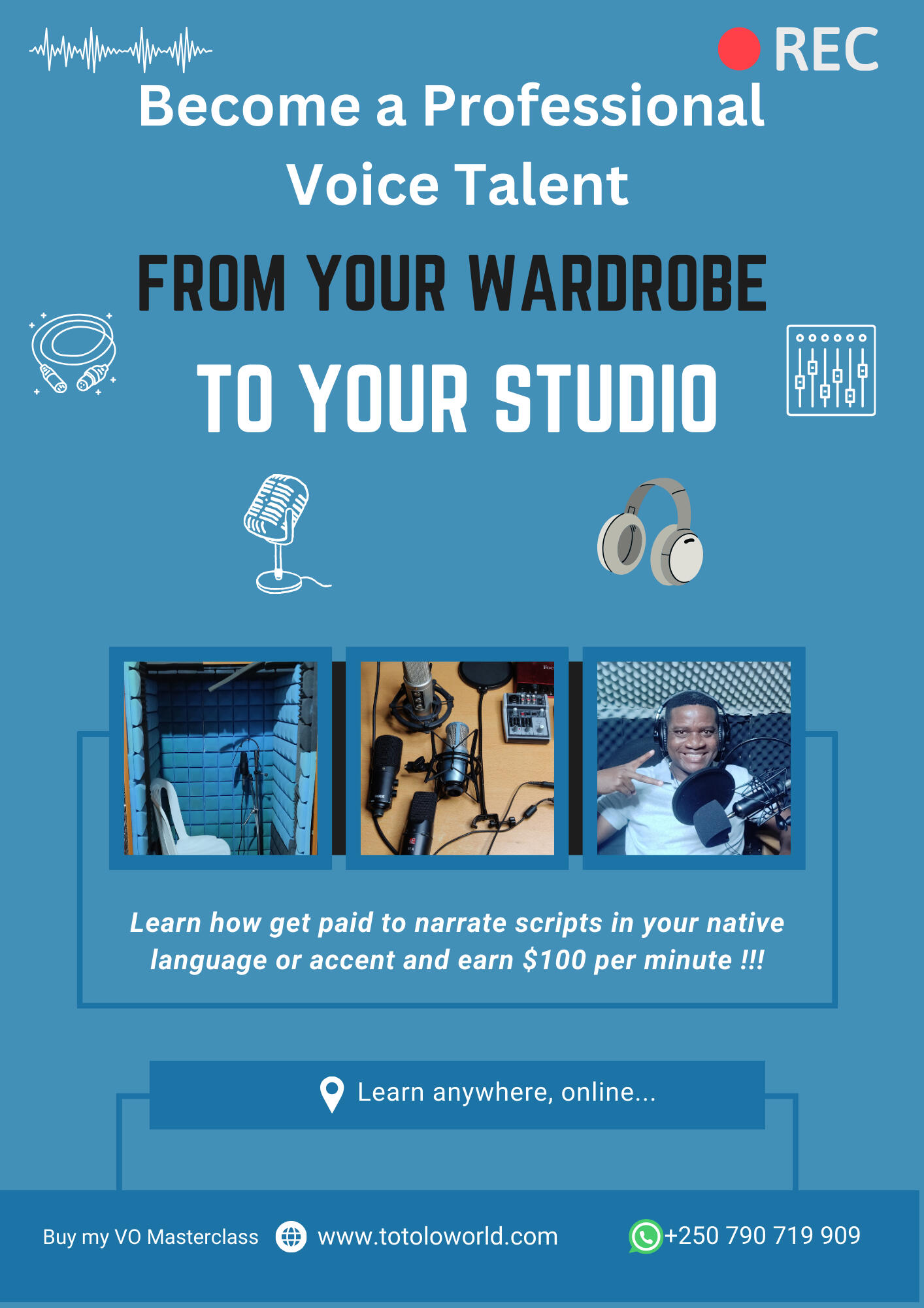You will become a successful voiceover talent in any language and in any accent.